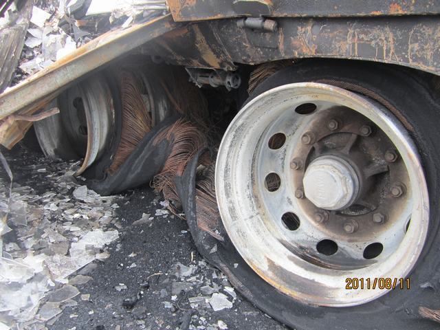 出险原因:轮胎突然自燃,导致车上货物80%烧毁;